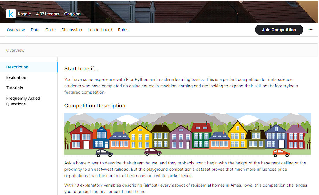 3년 전에 Kaggle의 House Price Prediction 프로젝트를 진행했었다.