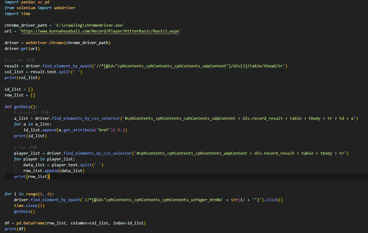 | [python] KBO 기록실 크롤링 - 2 (0) | 2022.05.30 |