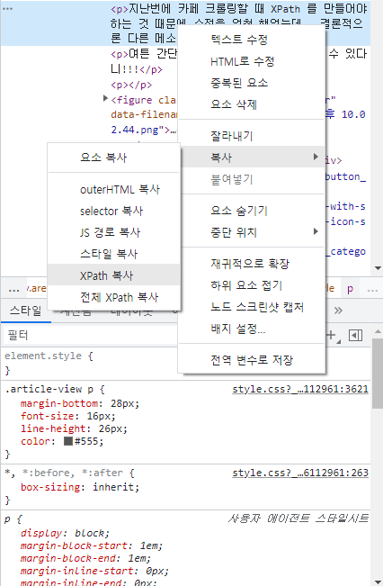 Web 소스에서 XPath 경로 복사는 방법 (크롤링할 때 유용)