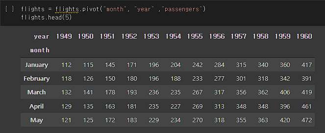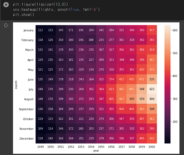 pivot table(row, column, data), heatmap 둘 다 한눈에 보기 좋은 메소드.